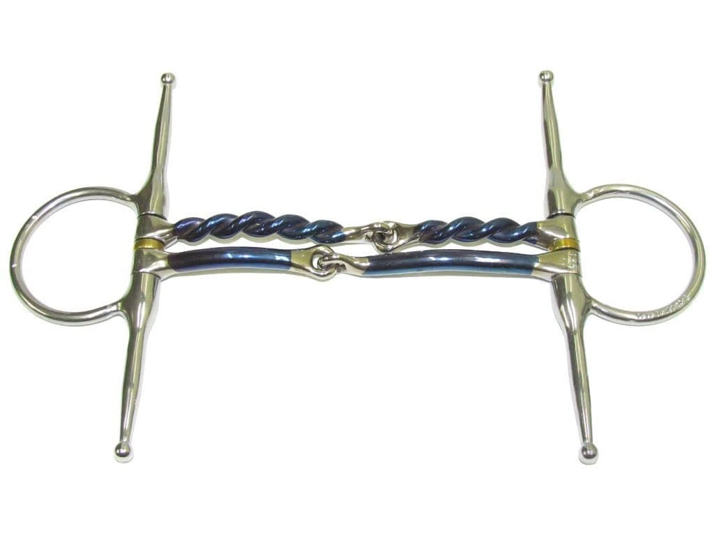 The Half Twisted Wire Barrie Full Cheek is a severe bit due to the centre links of the two pieces being offset by 20mm giving it a double nutcracker action, which creates more tongue and bar pressure.Good for strong older horses.