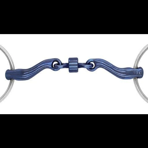 A horse shaking its head when bit pressure is applied or trying to put its tongue over the bit are classic signs the horse has a sensitive tongue. With this in mind the McHardy was created, it has a medium port creating space for the tongue, relieving pressure. The roller in the middle increases bar pressure and as a result extends the head and brings the nose in giving more control.