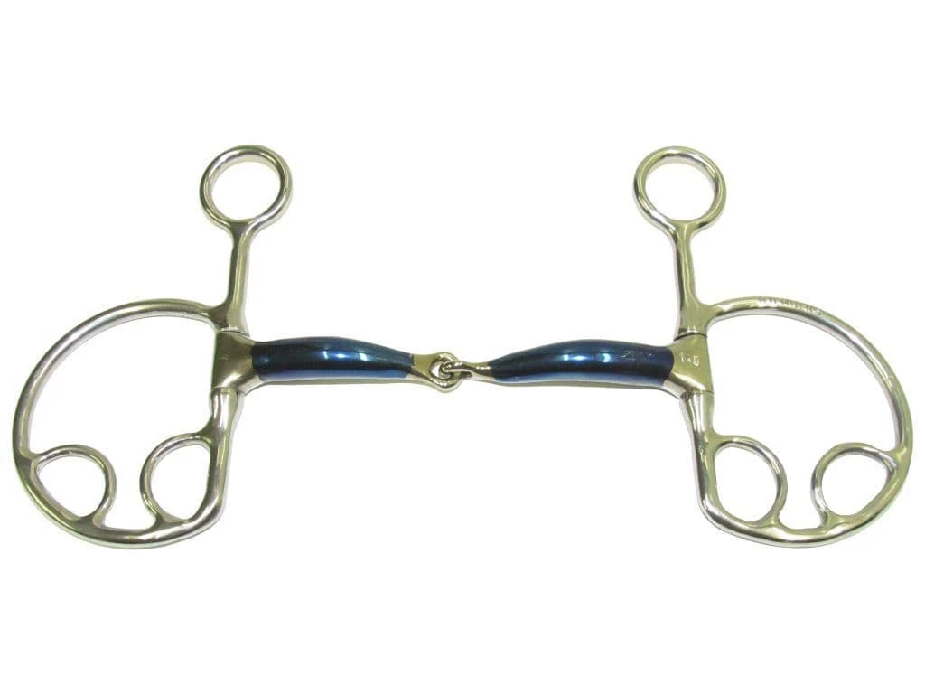 Our Snaffle Kimblewick mouthpiece is popular due to the curved mouthpiece which spreads pressure more evenly over tongue and bars. With the offset centre link it will lessen nutcracker action and pressure points on the tongue.