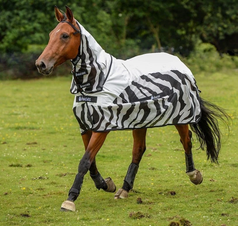 The Buzz-Off Rain Zebra Full Neck comes with a sun reflective colour that helps protect against overheating and has a fully integrated full neck.