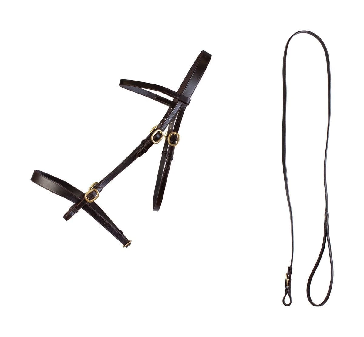 Stunning in hand bridle with brass fittings features a lightly raised browband for classic showring style.Suitable for use with a bit if required.Comes with matching lead