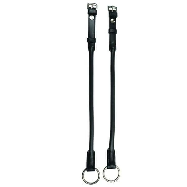 The Collegiate Cheltenham Gag Cheek Pieces are leather cheeks to be used with a running gag bit. The buckle ends can be opened to easily slide through the rings of a running gag bit. The hardware (rings) are made from stainless steel for a zero rust finish.