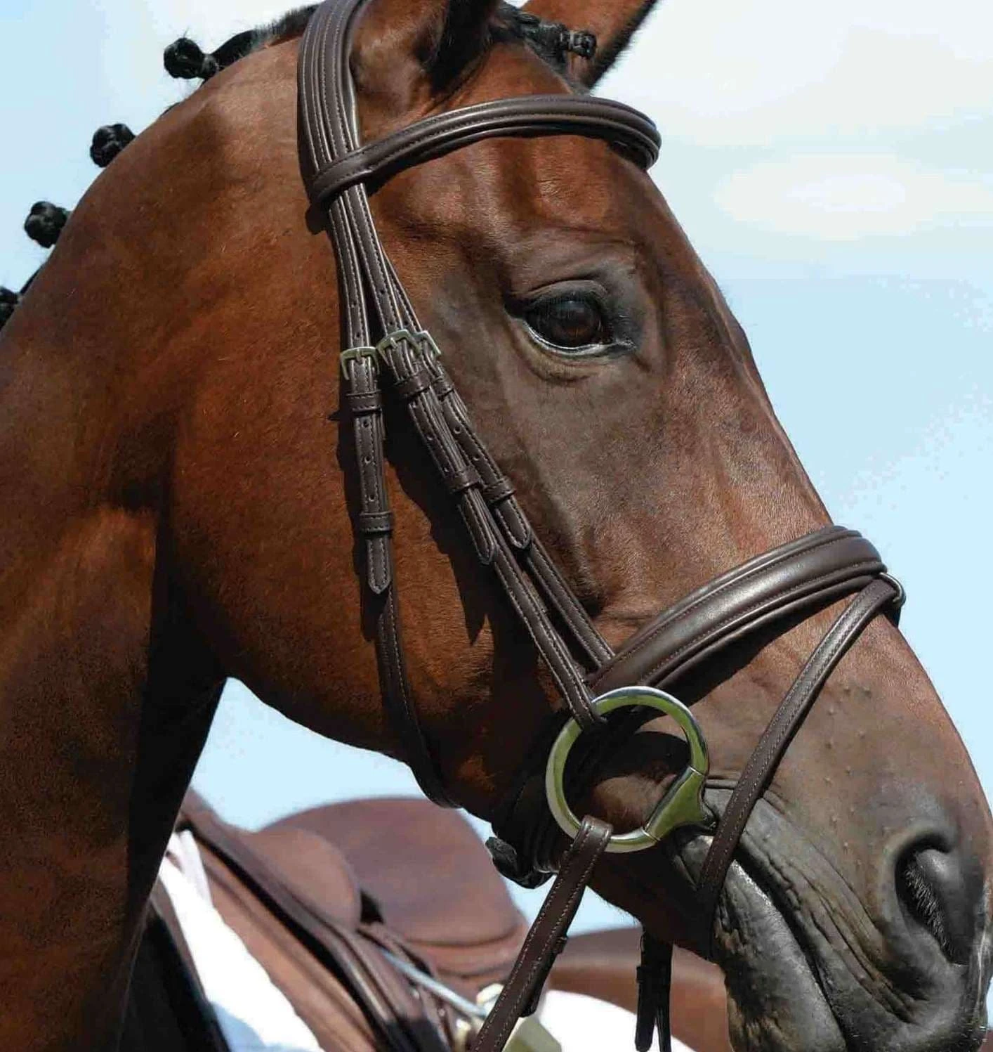 Quality synthetic leather padded raised Flash bridle. Durable and easy to care for with padded noseband and browband. Features stainless steel fittings. Also comes with rubber reins.