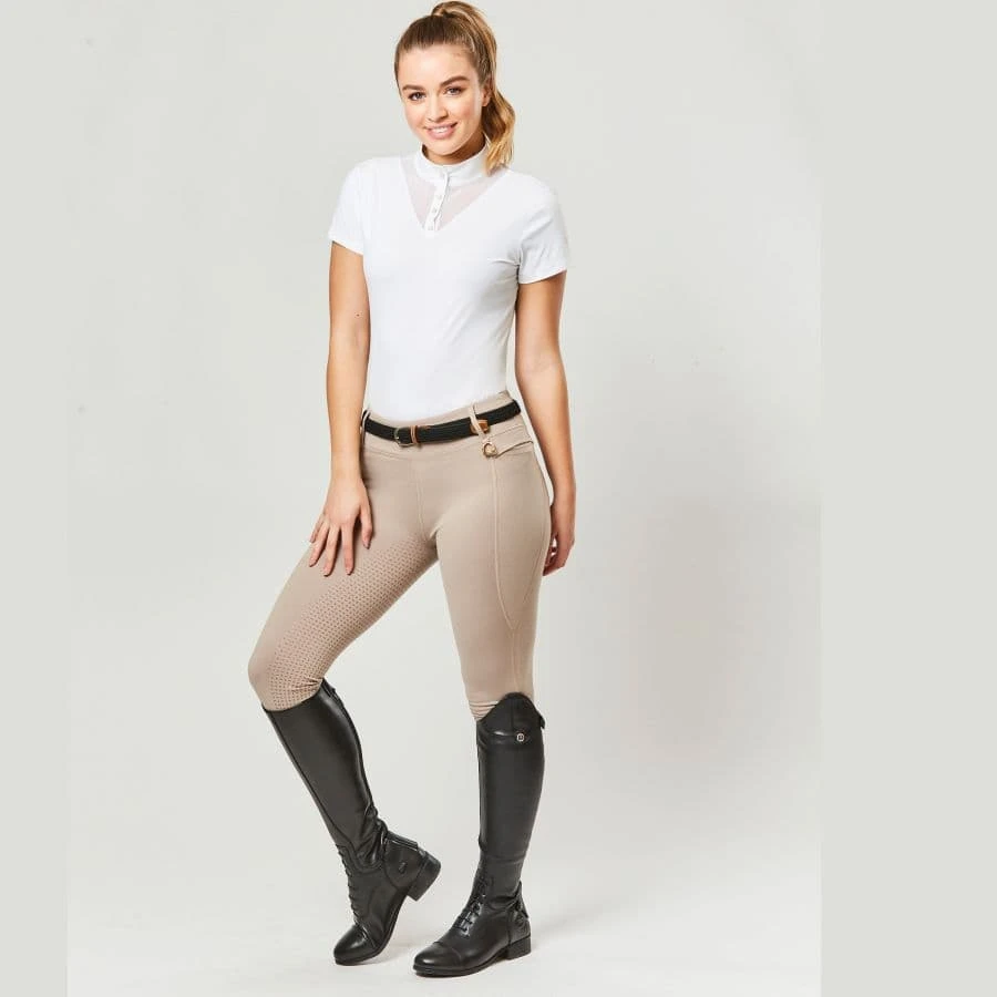 They’re here, the everyday riding tights that you’ve been waiting for. Created from technical stretch polyester for movement and year round comfort. Featuring Comfort Dry technology which ensures any moisture dries quickly to keep you cool, comfortable and dry, with a mid rise waist for the perfect fit. Engineered to sculpt in the right places to give you that perfect riding silhouette, whilst the no gap waistband keeps them snug on your waist. Belt loops allow you the option to tuck in your riding top if desired; with a stylish stirrup trim on the belt loop. Handy phone pockets with flap cover feature on both legs and the seamless Ezi-Grip Gel full grip silicone print seat provides stability.