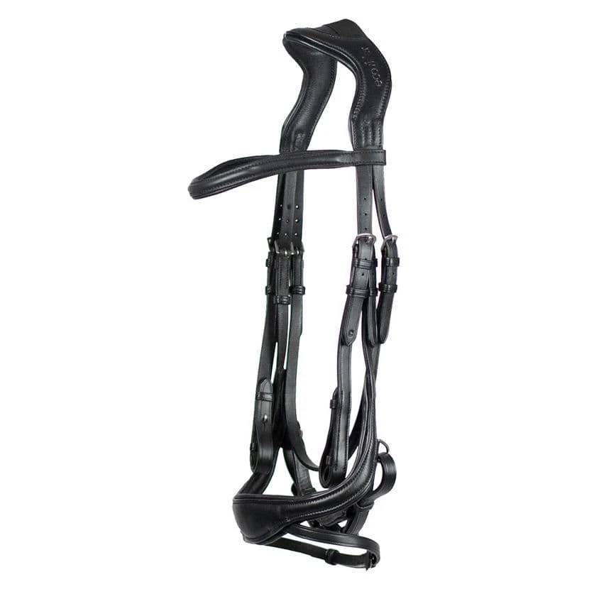 The Enigma Bridle offers complete luxurious comfort, made using the softest eco leather handcrafted to mould to your horse’s unique shapeTo further increase comfort, the headpiece, browband and noseband are softly padded to alleviate pressure from your horse’s face.PRODUCT DETAILSProduct features:Supersoft ergonomic headpiece complete with elastic insert and ear cutaway to ease any poll pressurePadded headpiece noseband and browbandAnatomic noseband with integrated flash strap that can be removed to leave no loop. This leaves a lovely clean line when the flash is not in useElegant lines are enhanced by the beautiful raised padded browbandEco LeatherThe vegetable tanning process results in leather with a distinct appearance and unmatched durability. One of the best features of vegetable-tanned leather is that it develops a patina over time with prolonged use and exposure to the environment. Due to the gentle processes involving several weeks of treatment, the vegetable-tanned leather has a much longer life than chrome-tanned leather. It is breathable and products with it get more comfortable the longer you use them.