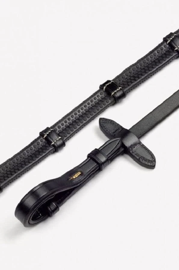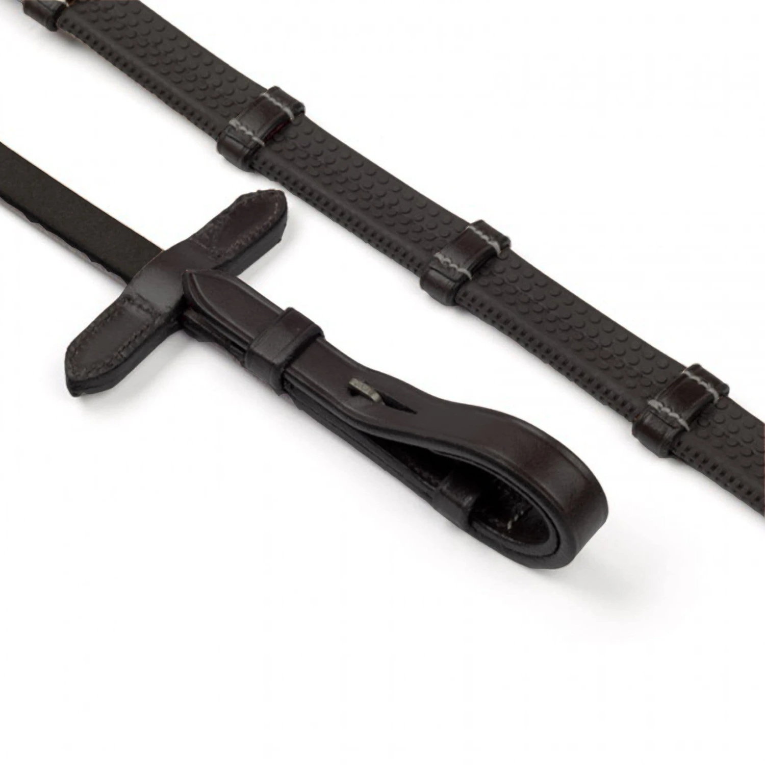 Continental Rubber Reins Made from smooth leather with a dimpled rubber grip with leather stoppers, billet attachments.