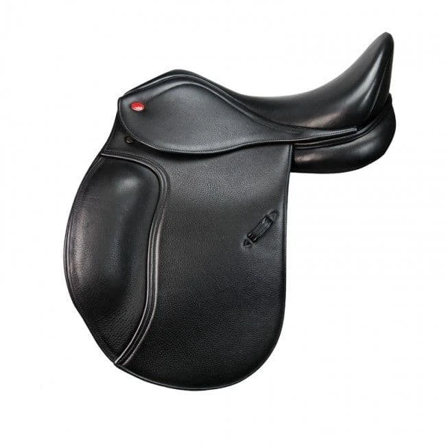 Designed to meet strict dressage regulations, the Highgate Dressage Saddle features a tonal stitch and tonal pipe throughout with classically styled panels.  There is a large moulded knee roll and deep seat to encourage proper leg position and posture, and the flaps have been elongated to take the riders longer leg position. Â