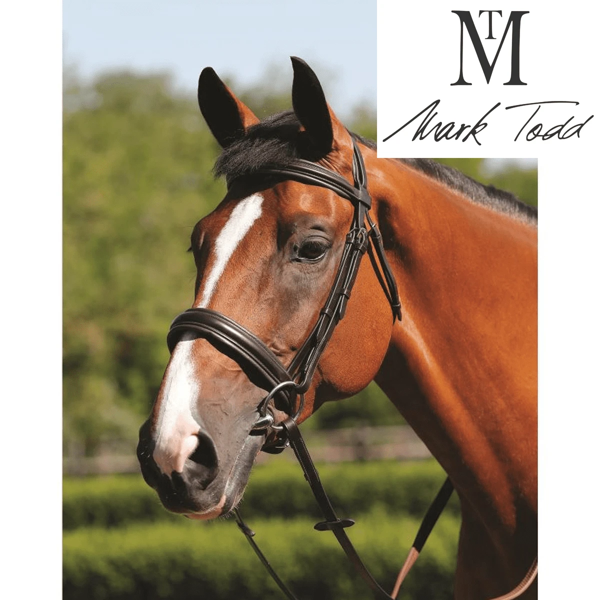 The high-quality leather used is soft and supple and features an elevator-style padded headpiece. Other features include stainless steel buckles, softly padded noseband and Mark Todd embossed pin on the browband.