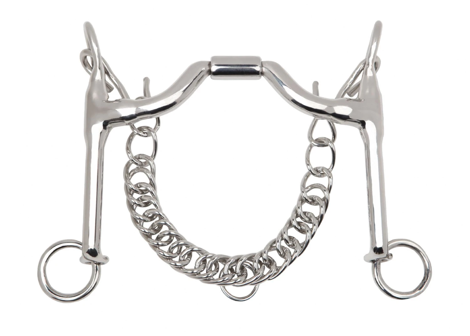 The Weymouth cheekpiece is designed to be used in conjunction with a bridoon bit in the dressage double bridle. Comes with English curb chain.