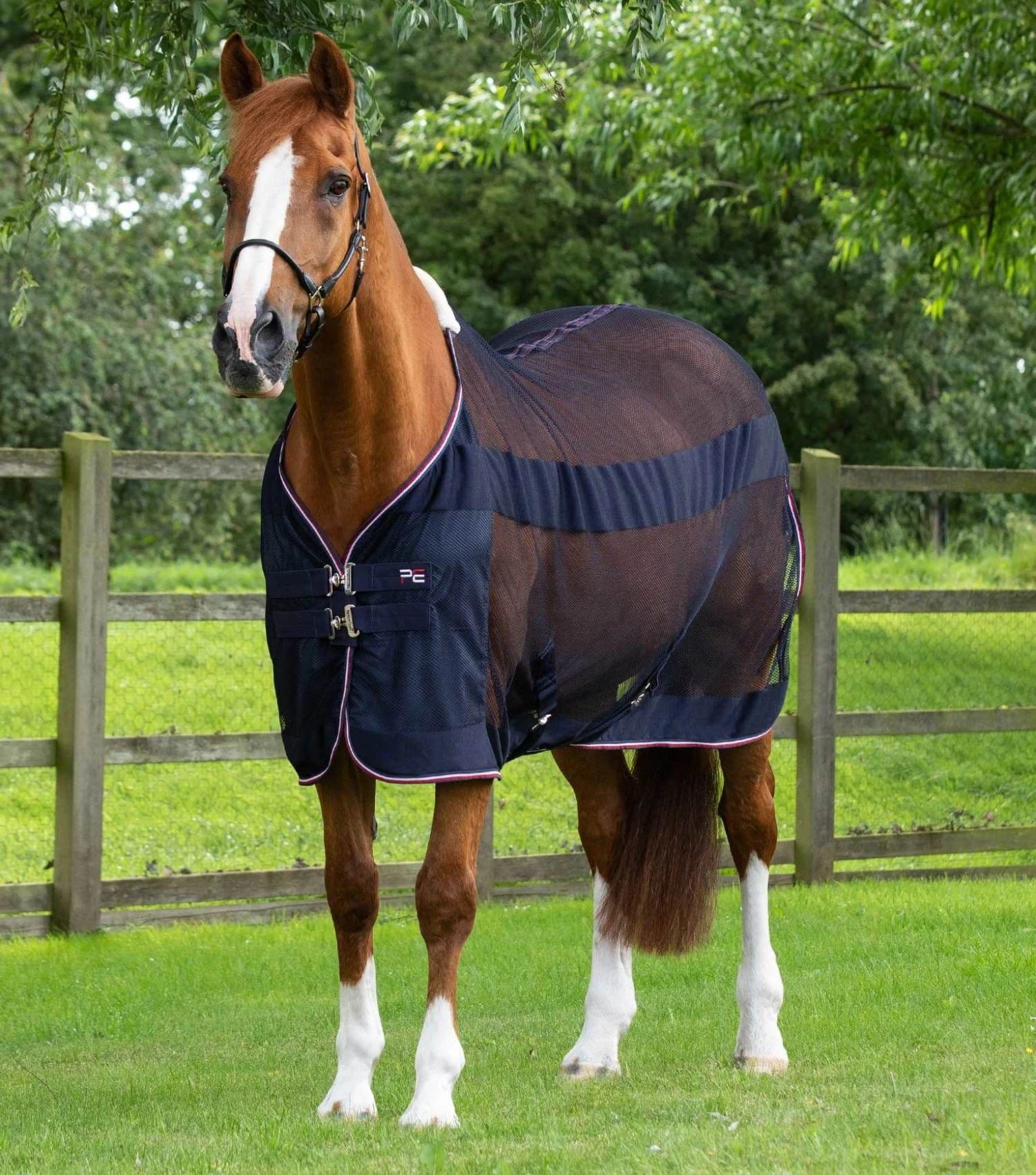 A combination of solid and mesh knit formation, this technically advanced cooler provides a partial coverage of the horses coat which aids in the absorption and dispersion of moisture while allowing the exit of warm heat energy given off by the horse.
