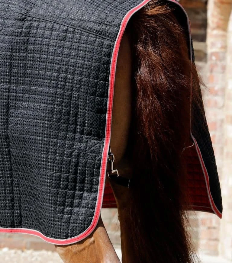 Combining innovation with tradition we have created a refined, top quality cooler that is suitable for a wide variety of uses. Constructed using three layers of technical fabrics this rug is at the forefront of cooling technology. The lining is constructed from a lightweight waffle weave which is highly absorbent, durable and helps quickly wick away moisture from your horses coat. The middle layer contains a thermo bonded filling which is light, breathable and offers added protection from chills it also helps to draw and disperse moisture speeding up drying time. Our specially designed, quilted waffle weave outer provides a traditional, cosy aesthetic and helps prevent shavings from sticking to the surface of the rug when your horse is stabled.