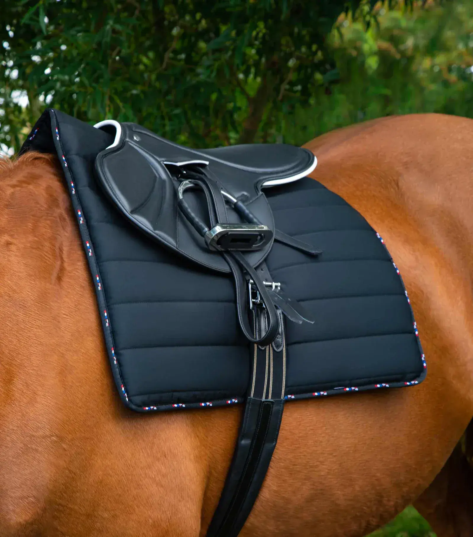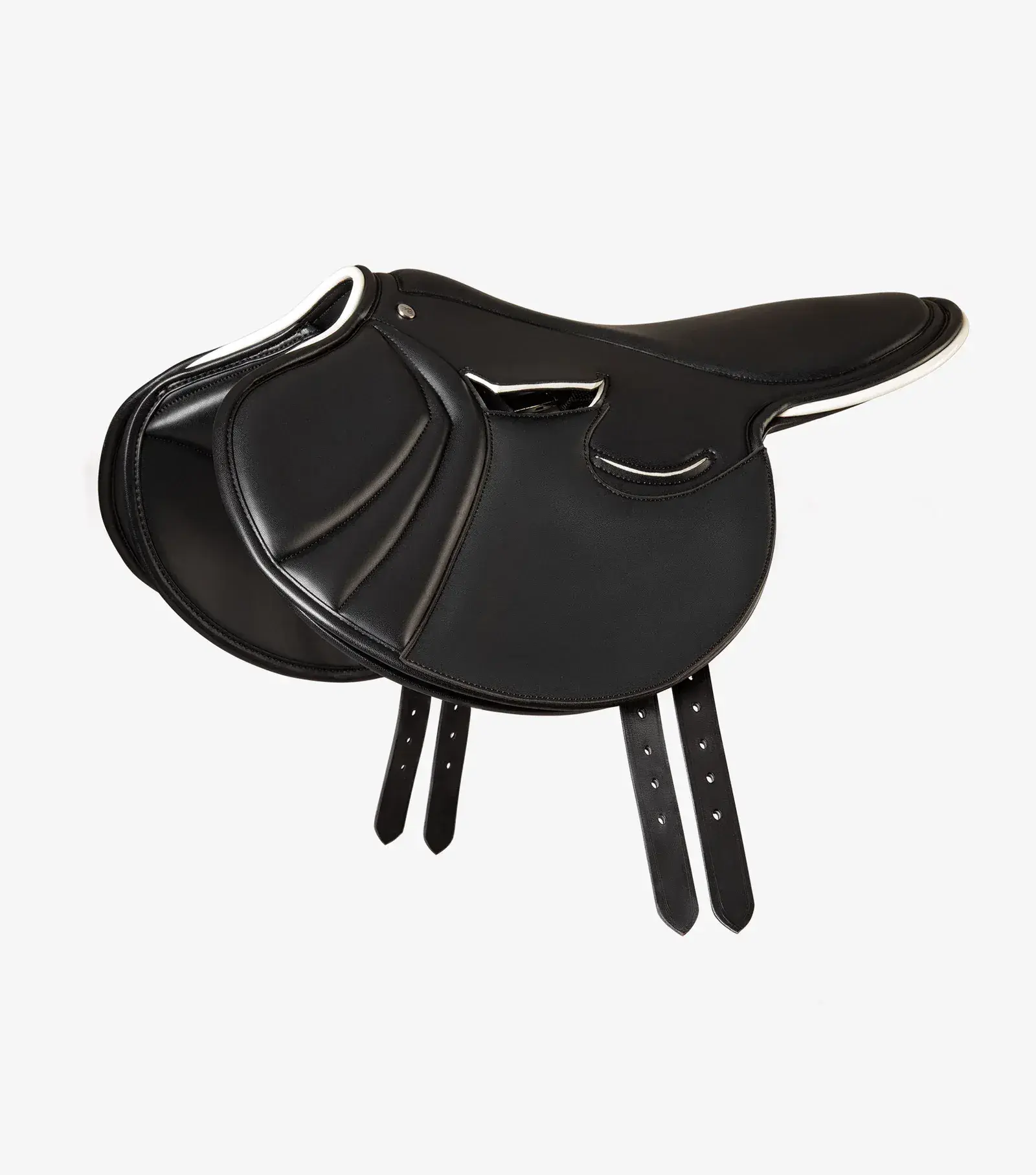 Stainless-steel safety flick stirrup bars offer a safe and easy way to attach and remove your stirrups, covered by a synthetic leather skirt. Two detachable 25mm leather girth straps offer adequate girthing for extra security. Deeper saddle flaps offer better coverage over the girth buckle when horse is saddled. Wide panels have been incorporated for maximum shoulder movement, and a large load bearing area and padding reducing impact on the spine and top-line of the horse.Â