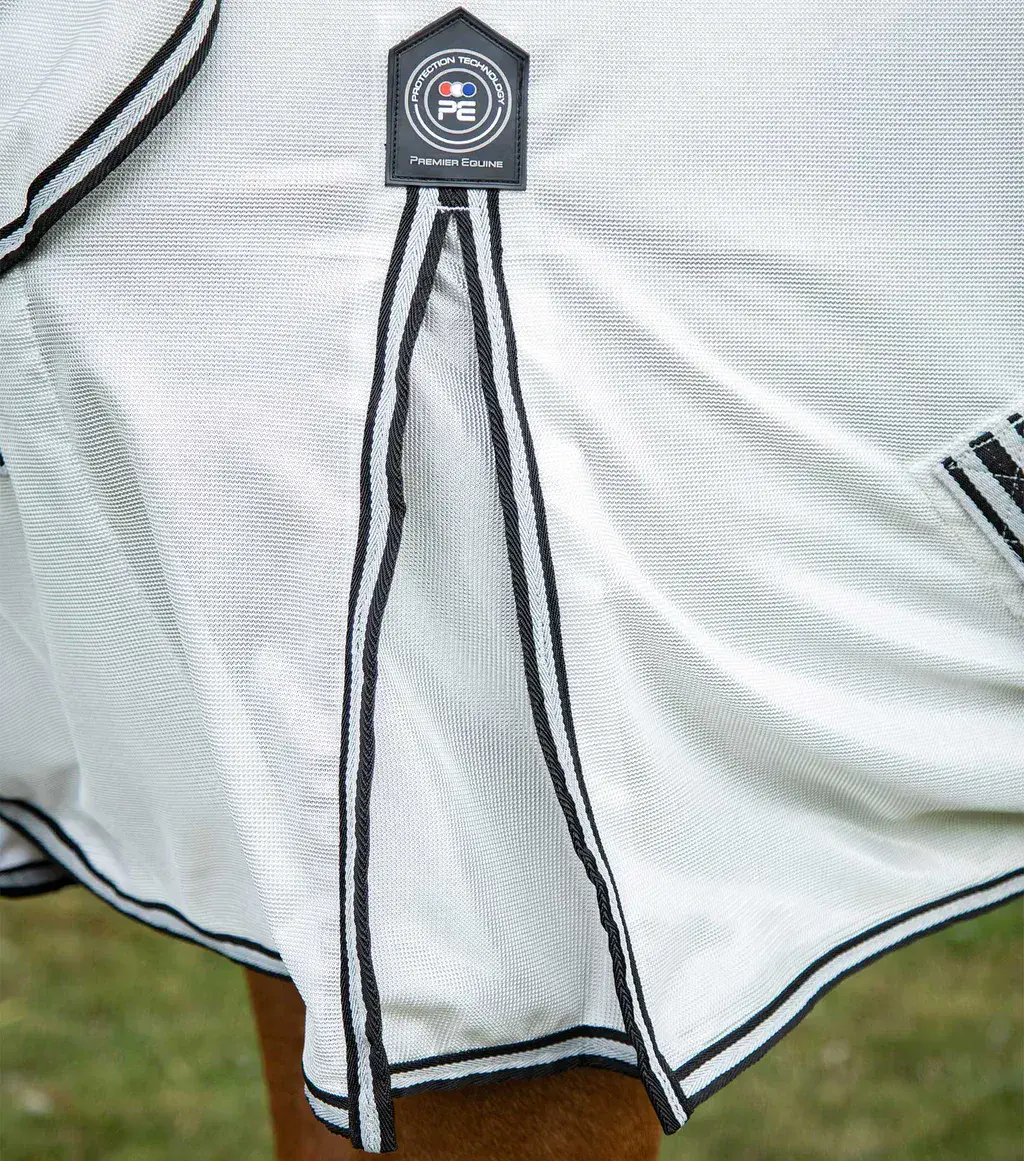 A highly protective fly and bug rug designed from an innovative Interlocking mesh. The soft formation is likened to armour link chain which allows the fabric to move in conjunction with the body. The locking formation provides a channel which allows the dispersion of heat and an influx of air to help with cooling and thermoregulation helping to prevent heat build-up in warm weather and aiding the wellbeing of your horse.