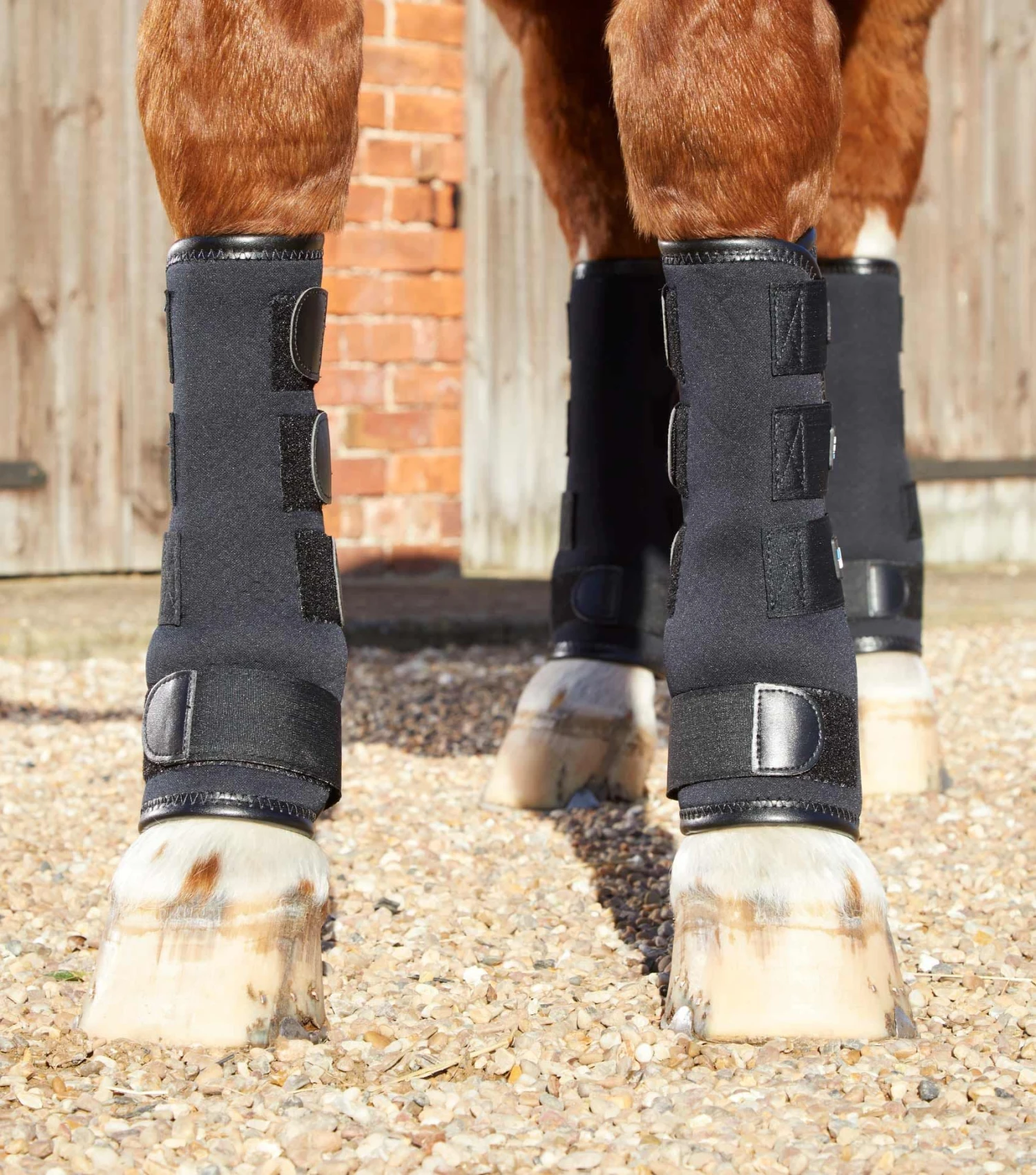 Premier Equine turnout boots are designed to help prevent injuries and provide support to the horse’s tendons and ligaments whilst in the field. Made from our specialist Air-Tech ventilated neoprene for maximum breathability. The simple, anatomical wrap design makes them easy to put on and take off without compromising on support. Covering the whole fetlock area, these boots offer great coverage and enhanced protection for your horse. Designed for use on both front and hind legs.