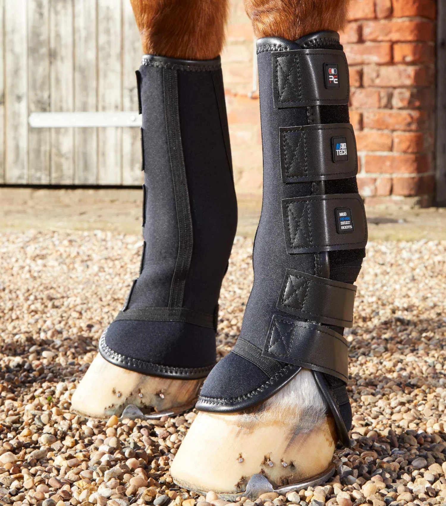 These advanced high-cut mud fever boots are made with Air-Tech ventilated neoprene for maximum breathability. Anatomically shaped to provide superior comfort for your horse whilst supporting the cannon bone and soft tissues. Fatigue is reduced in the tendon, fetlock, ligaments and suspensory. The boots cover the whole of the lower leg and pastern area, making them great for use as a preventative measure against mud fever and chills. Suitable for year-round use in paddocks. Can be used on both front and hind legs.