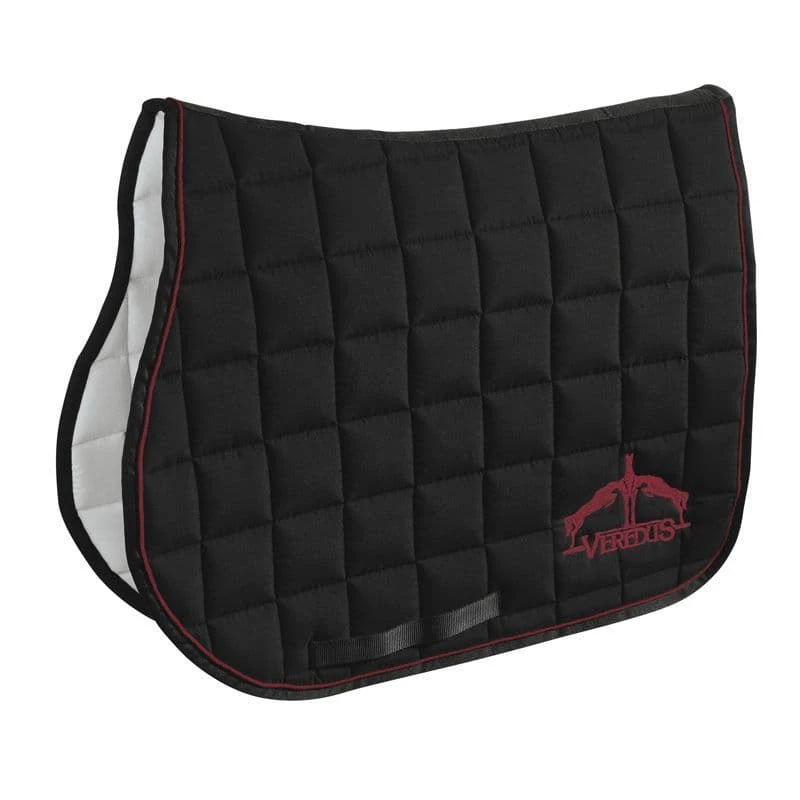 A jumping saddle cloth made from cotton and polyester with moisture-wicking padding.