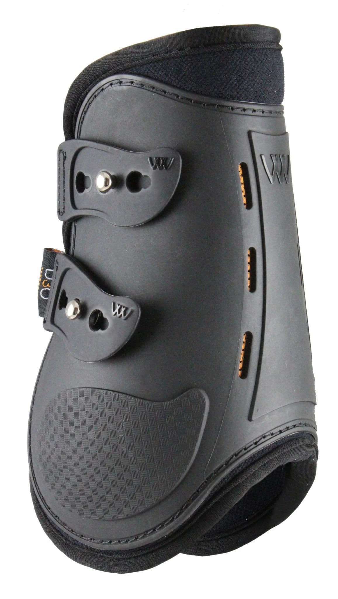 This stunning open-front fetlock boot combines D3O technology with breathable neoprene and an ergonomic vented double shell. This provides exceptional protection against knocks and brushing injuries.