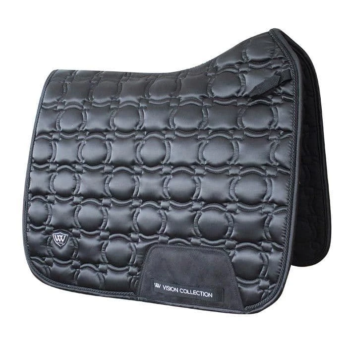 Woof Wear’s Vision Dressage Pad has a High Wither Design and has been shaped to fit both the contours of the horse and modern saddles.